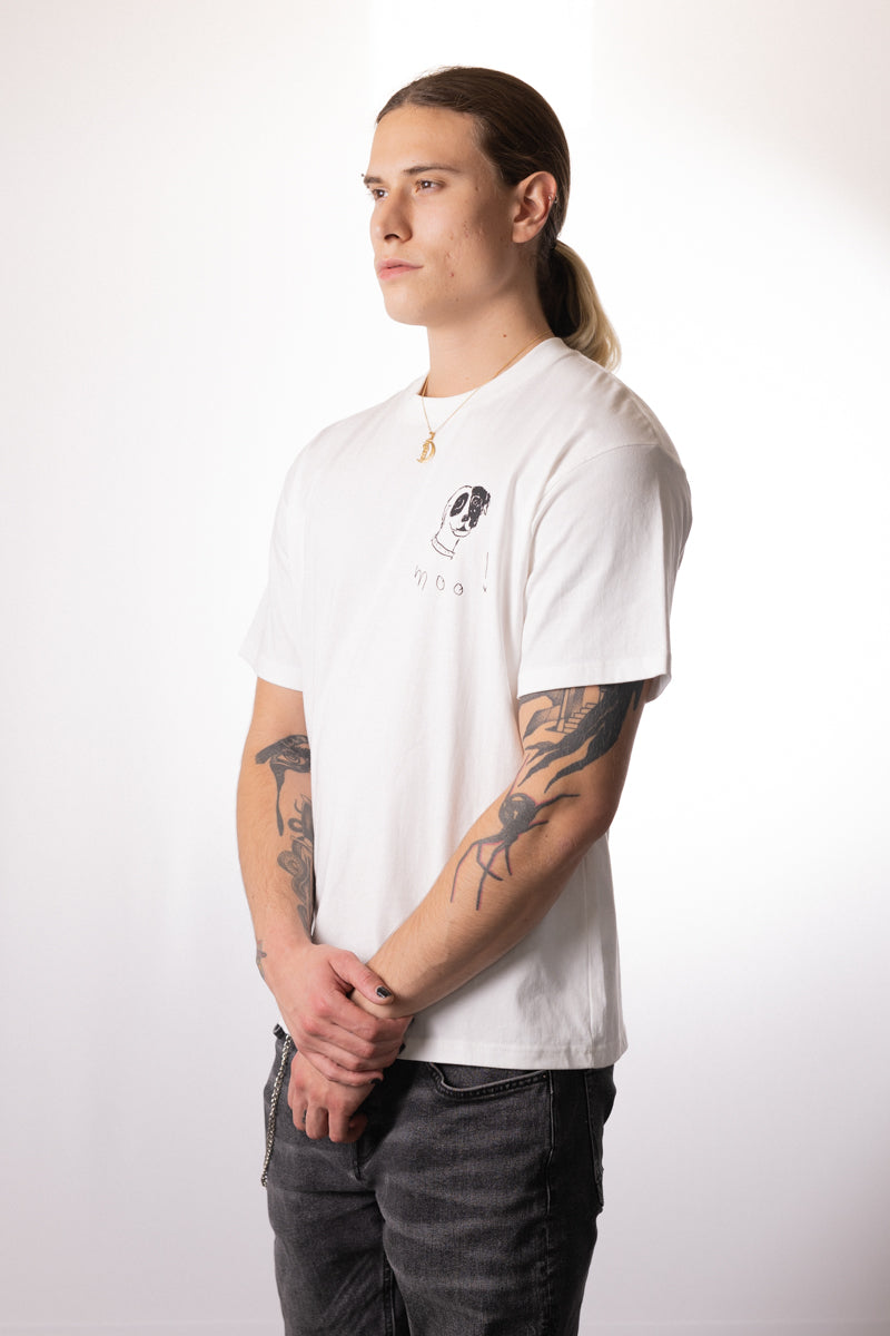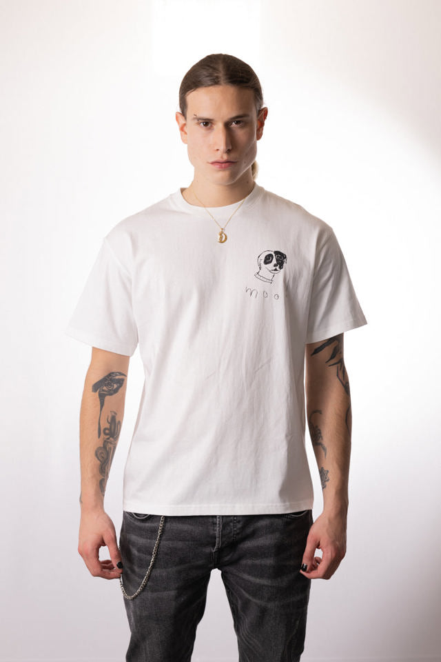 このムーTシャツには、ジョニー・デップの愛犬だったムーのプリントが施されています。ムーはデップの人生の中で重要な存在であり仲間でした。このデザインはムーへのトリビュートであり、デップが愛したペットへの絆と愛情を表現しています。
